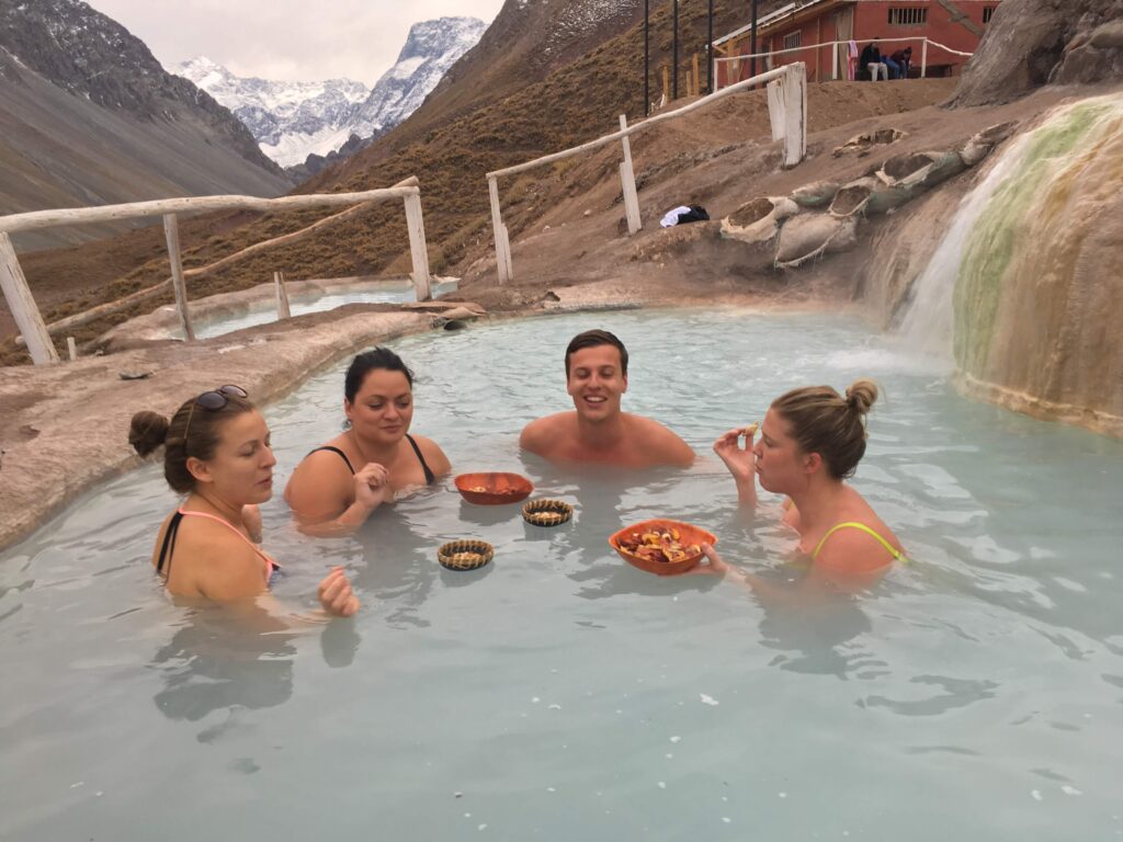 “Wine and Wonders” is a tour that combines a visit to a winery with a trip to the natural hot springs of Baños Colina in the Andes. Enjoy a tasting of exquisite wines and relax in the natural hot springs with stunning views of the Andes.